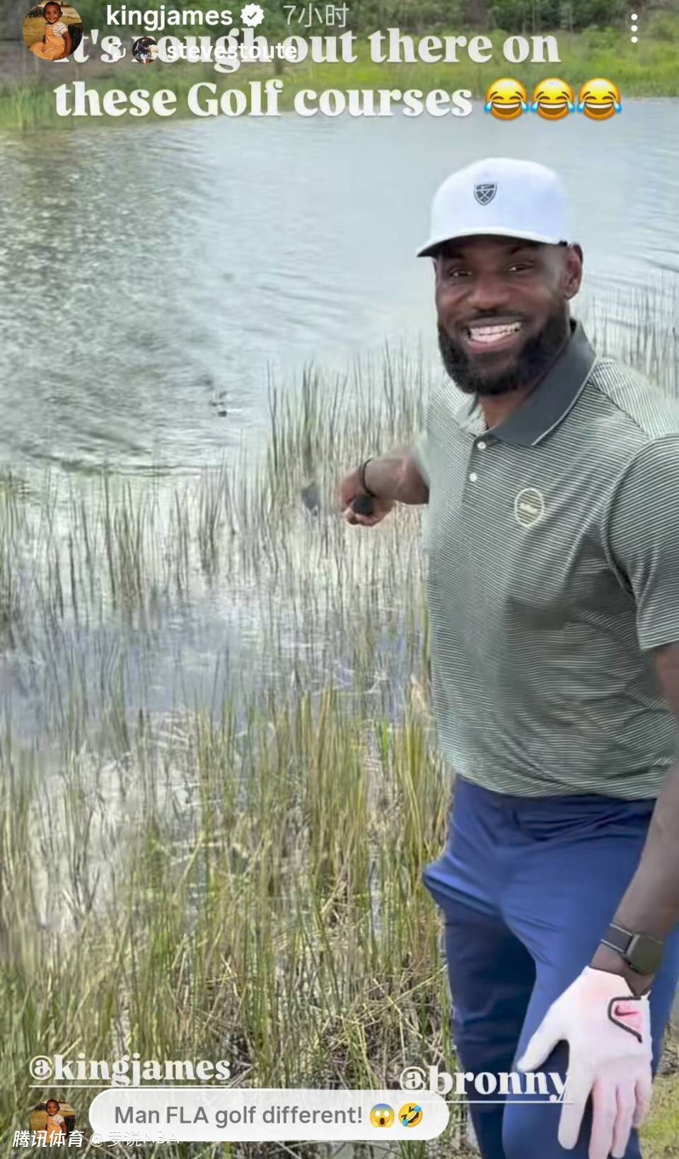詹姆斯转发了他此前和布朗尼去打高尔夫偶遇水中鳄鱼的趣味视频,并点评道:“天啊,佛罗里达州的高尔夫真是不一样!”湖人最近连续在佛罗里达州客场挑战热火和魔术。