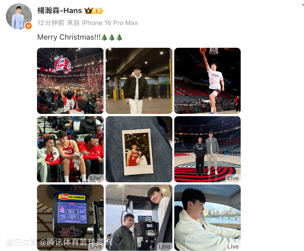 北京时间12月26日,今天是美国当地时间的圣诞节,开拓者球员杨瀚森更新社媒,晒出自己在美国的组照,其中将自己和女友拍立得的照片放在了C位,配文写道:“Merry Christmas!!!”