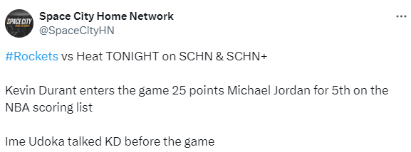谈及杜兰特生涯总得分即将追平迈克尔-乔丹,乌度卡表示:“我既以对手教练的身份和他交过手,也以球员身份和他同场竞技过,看着他一路走来已经很久了。如今他打出这种表现,几乎已经是家常便饭,他只是专注做好自己的事,你真的不会为此感到意外。”