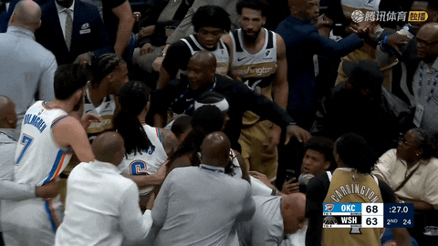 第二节还剩27秒时,雷霆与奇才爆发激烈冲突,雷霆的杰林-威廉姆斯、华莱士和米切尔以及奇才的尚帕涅先后被驱逐出场,随后雷霆在上半场结束时以69-64领先进入更衣室。