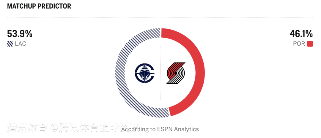 开拓者46.1%,快船53.9%