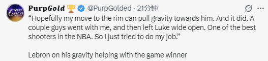 在谈到自己牵制对手助肯纳德绝杀时,詹姆斯表示:“我的心态很平静,没有压力。我们只是稳住那些关键时刻。我们知道自己能防下对手,也知道自己能打出关键配合,而今晚我们做到了。我往篮下切入,就是希望吸引对方所有防守注意力。结果也确实奏效了。两个人都来防我,就让肯纳德完全空位了。他是联盟最顶级的射手之一。我只是做好了自己的事。”
