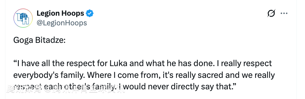 赛后东契奇谈自己吃到的那次技犯(和比塔泽两人互喷),透露比塔泽用塞尔维亚语问候了自己全家。比塔泽也在赛后回应了此事,他表示:“我非常尊重卢卡以及他所取得的一切成就。我真的尊重每个人的家人。在我成长的环境里,家庭是非常神圣的,我们都非常尊重彼此的家人。我绝对不会说出那种话。”