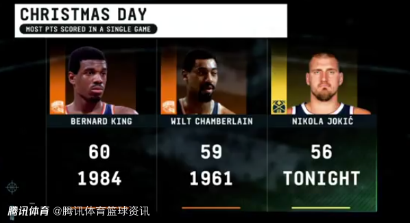 此外,约基奇成为了圣诞大战中第五位单场得分50+的球员: