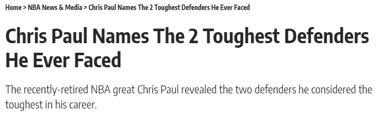 北京时间3月22日,保罗近期以演讲嘉宾的身份亮相了在洛杉矶举办的2026年前瞻峰会。在被问及职业生涯中最难对付的两位防守球员时,保罗点名了2000年代的防守悍将托尼-阿伦,以及已故传奇科比-布莱恩特。