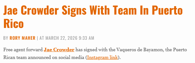 北京时间3月23日,波多黎各球队巴亚蒙牛仔队在社交媒体上宣布,自由球员前锋杰-克劳德已加盟球队。