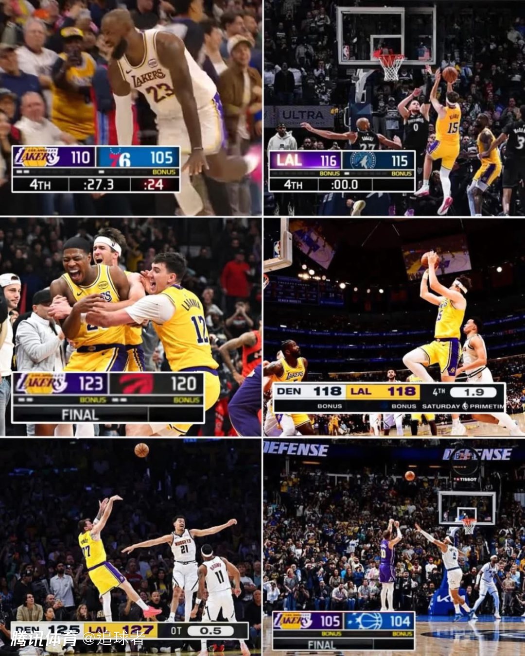 本赛季,湖人已经4次绝杀对手——詹姆斯助攻八村垒压哨绝杀猛龙,里夫斯压哨绝杀森林狼,东契奇0.5秒加时绝杀掘金和肯纳德0.6秒三分绝杀魔术。