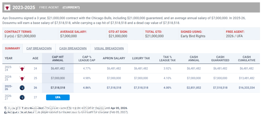 他今年的薪水只有751万,他的合同今夏到期,他在森林狼的表现很不错,今夏有希望冲击一份1000万-2000万的合同。