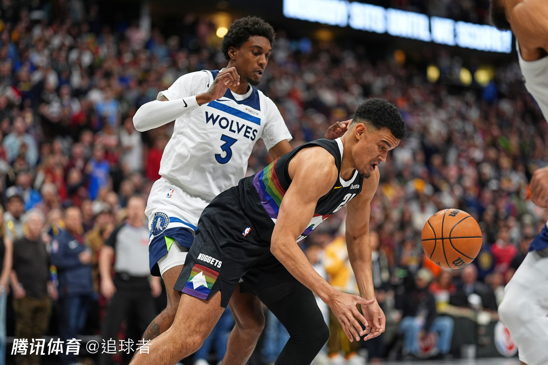 加时赛,爱德华兹打板得分以及造犯规两罚全中,迪文琴佐两罚全中,华子轰进三分,森林狼9-0打停比赛,随后约基奇和小哈达威连中两记续命三分,兰德尔两罚全中,约基奇再中三分以及抛投扳平比分,戈贝尔抢断造犯规,掘金挑战成功,改判戈贝尔犯规,约基奇两罚全中,华子突破得分,穆雷轰进制胜三分,爱德华兹致命失误,约基奇两罚一中,华子暴扣后干扰比赛吃到技犯,约基奇罚球锁胜局,华子又吃T被驱逐,穆雷和约基奇连续罚球杀死比赛,最终掘金加时拿下比赛。