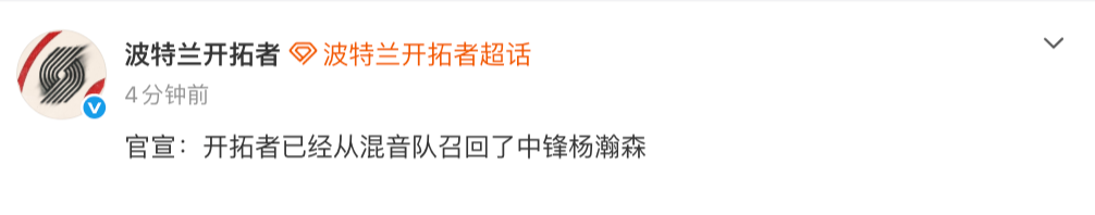 北京时间3月23日,开拓者官方宣布,球队已经从混音队召回了杨瀚森。明日上午10点,开拓者将在主场对阵篮网。