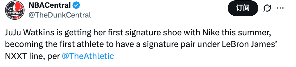 北京时间3月24日,据美媒TA报道,朱朱-沃特金斯将在今年夏天迎来自己的首款耐克签名鞋,她也成为詹姆斯旗下NXXT系列首位拥有签名鞋的运动员。