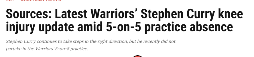 对于库里的右膝伤势,勇士一直采取极度保守谨慎的治疗方案,因此推迟了他的5对5合练时间。在此前的报道中,勇士方面看好库里在六连客场之旅结束后复出。球队收官10场比赛中有7场坐镇大通中心,无需长途奔波,便于库里接受系统的膝盖治疗。