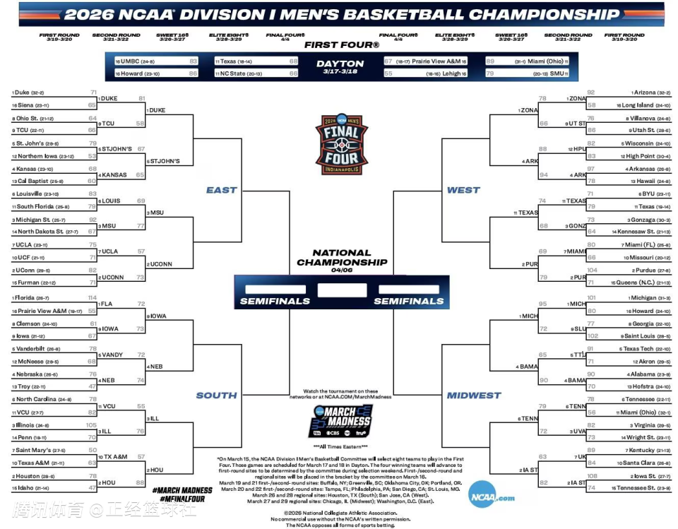 本届疯三冷门频出、悬念拉满,卫冕冠军惨遭绝杀止步,两大NBA状元热门遗憾出局,仅剩卡梅伦-布泽尔领衔的杜克大学扛起冲冠大旗,成为本届赛事最大夺冠热门。