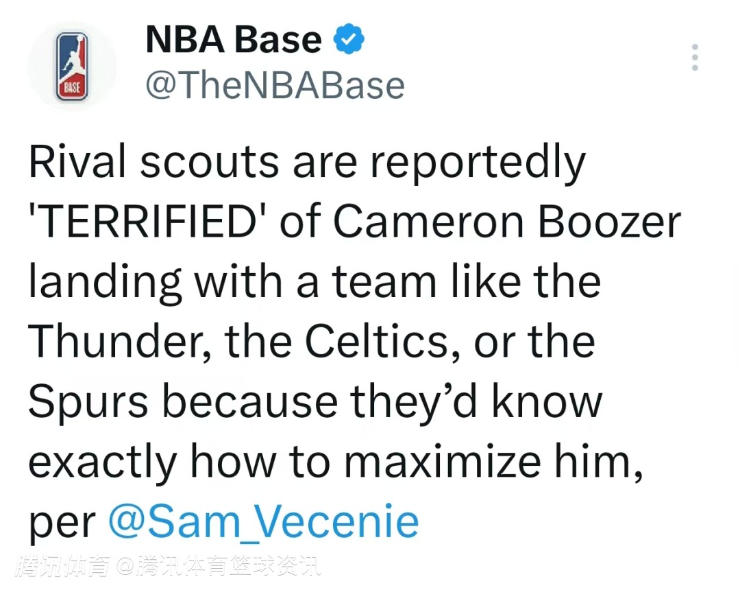 北京时间3月24日,据记者Sam Vecenie报道,对手球队的球探们对卡梅隆-布泽尔可能加盟雷霆、凯尔特人、马刺这类球队感到“极度忌惮”,因为这些球队最懂得如何最大化发挥他的天赋。