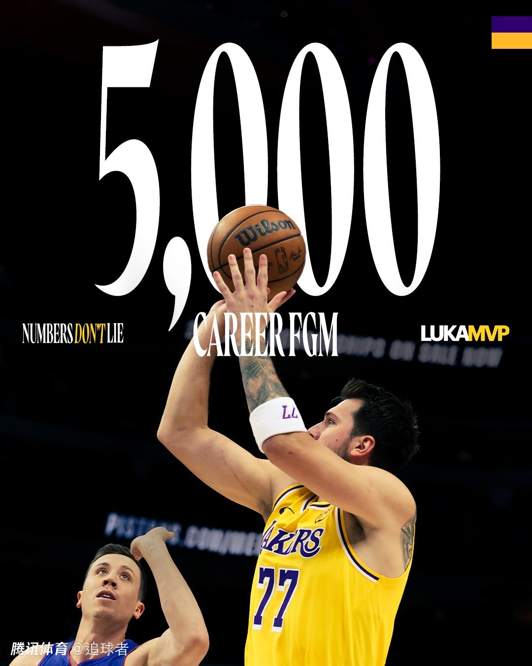 1、东契奇生涯运动战进球突破5000球