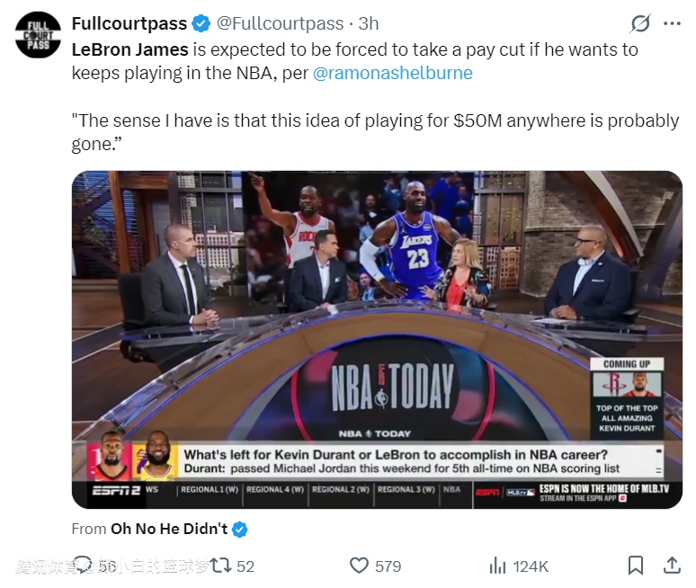 赛前湖人传来一个好消息,根据蕾梦娜-谢尔伯恩的消息,詹姆斯年薪超过5000万美元的时代或许已经结束。他愿意降薪,以便湖人妥善续约奥斯汀-里夫斯,并补强剩余阵容。