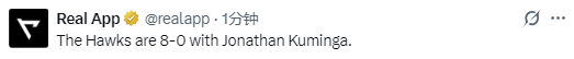 北京时间3月24日,NBA常规赛继续进行,老鹰队146-107击败灰熊队。库明加此役替补出战20分钟,7投5中得到16分5篮板3助攻1抢断。本赛季,当库明加代表老鹰队出战时,他们取得了8胜0负的战绩。