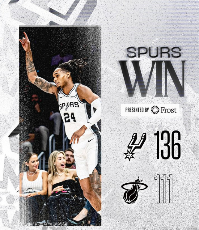 北京时间3月24日,NBA常规赛,马刺在客场以136-111击败热火,随着今天火箭输给公牛,这样一来,马刺也锁定了西南赛区的冠军。