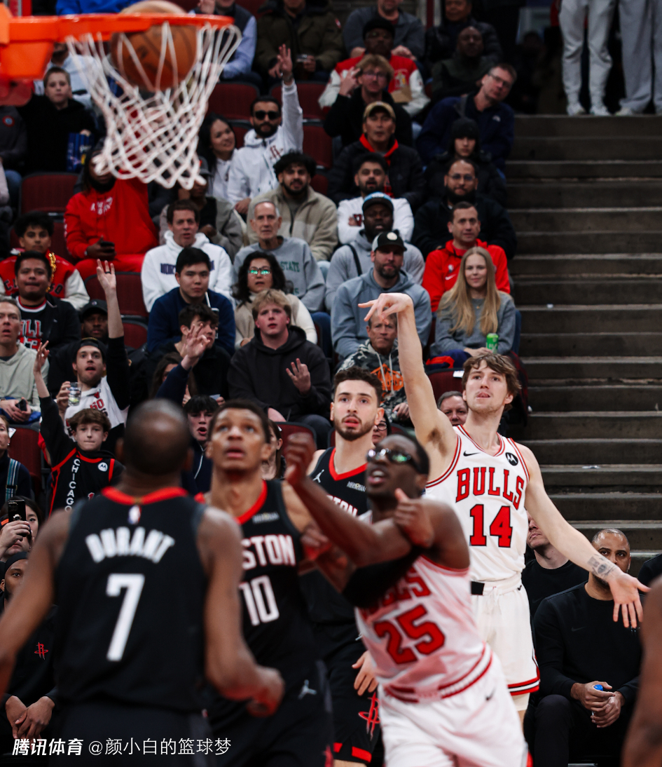末节开场申京继续得分,虽然杜兰特在3分钟里连拿7分帮助火箭反超,随后火箭连续的2个低级失误让公牛回应7-0再度落后,关键球还是申京暴扣2+0再度扳平,谢泼德三分打铁,公牛两个反击命中三分再度领先到6分,杜兰特两个续命三分缩小到3分,谢泼德又被单点,杜兰特无球进攻犯规,乌度卡不满裁判的吹罚吃了第二个T被驱逐了,比赛毫无悬念了。