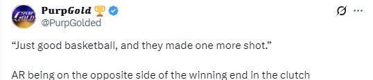 里夫斯表示:“我们拼得很努力,也执行了战术,同时落实了教练组中场布置的调整。第三节我们一度落后16到18分,之后我们一路追分,末节把分差缩小到2分。双方都打出了高质量的篮球,只是对手多投进了关键一球而已。我们有不少亮点,也还有不少细节需要修正。这次客场赛程漫长,但我很认可球队的拼搏态度。”