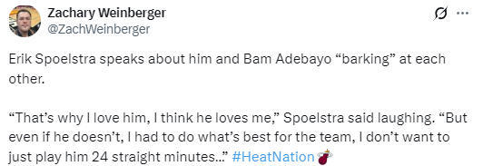 斯波还谈到了自己与阿德巴约的争执,他说道:“这就是我喜欢他的原因,我相信他也懂我。就算他不理解,我也必须做出对球队最有利的决定,我不能让他连续出战24分钟。”