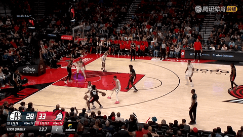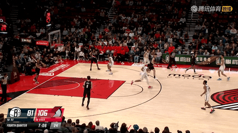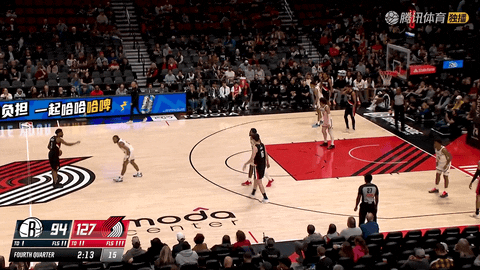 第四节还剩3分18秒时,开拓者全队已经命中18记三分球,将比分从第一节中段的8比8拉开到125比92,一度领先33分,外线投射完全击穿篮网防线。