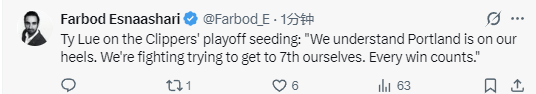 在谈到季后赛席位的争夺时,卢说道:“这场胜利对我们至关重要。开拓者紧追不舍,我们还在争夺第七名。赛季尾声只剩十场球,每一场都至关重要,这场胜利太关键了。”