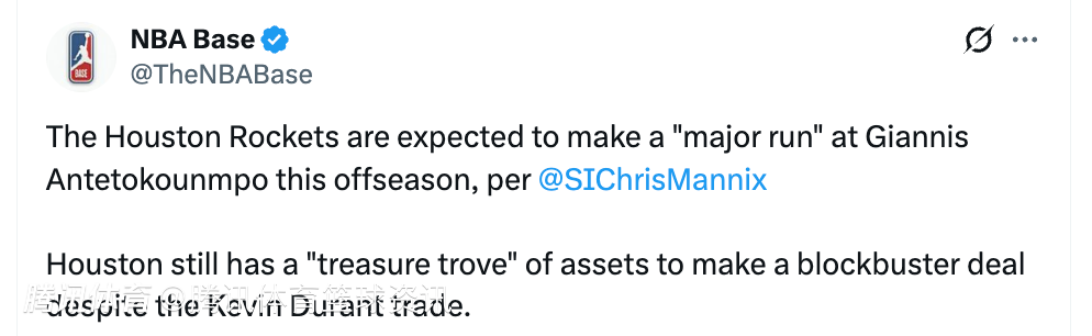 北京时间3月25日,据美记Chris Mannix报道,休斯顿火箭队预计将在休赛期全力追求字母哥。