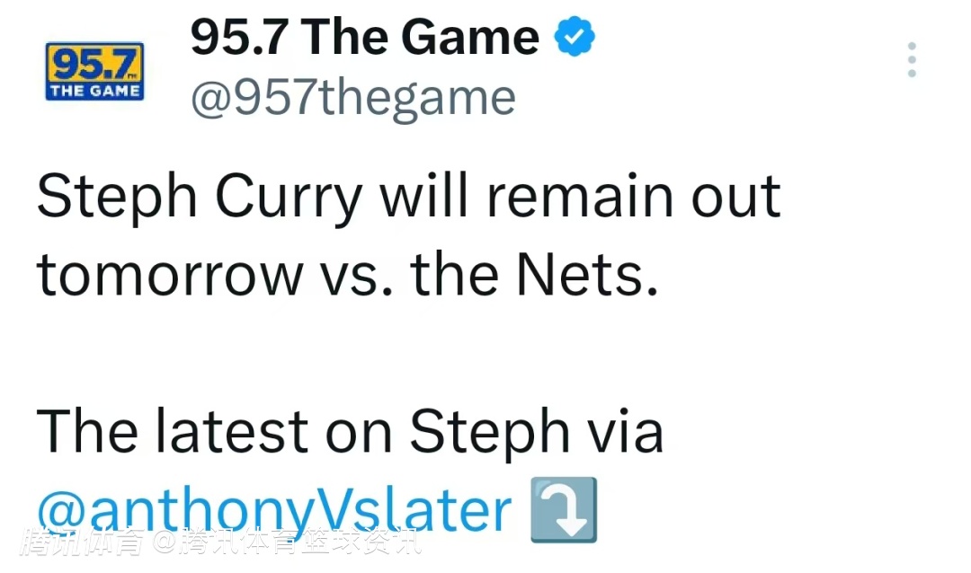 Slater表示:“我跟大家说一下周末的最新时间线。周日,球队宣布他将加入全场对抗训练,这一点很关键。周日老鹰赛前,史蒂夫・科尔表示预计他会在周一(亚特兰大)参加队内对抗赛。赛后我简单采访了库里,试探着问他是不是周四或周六能复出,他说:“这要看恢复情况,我还有几个恢复节点要过。”