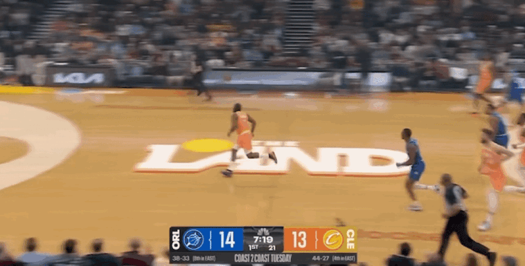 哈登增加个人持球冲筐,他一人连得8分并且造成对手三分投射犯规,帮助骑士紧咬比分。双方在首节比赛展开精彩的互攻大战,骑士被对手连续三分命中,在首节比赛落后魔术7分。