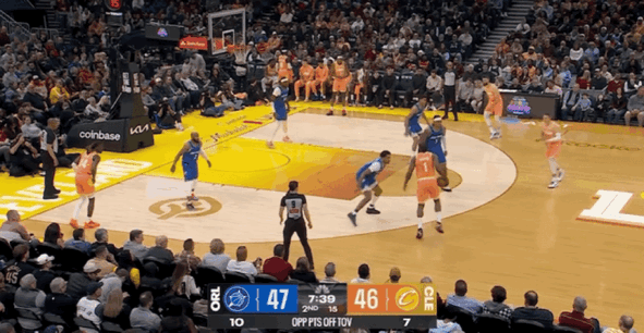 首节比赛,魔术上来反客为主打出8-2的进攻压制,骑士凭借着莫布利和米切尔内外兼修成功追分。哈登登场后稍显慢热,他的首次得分意外地来自一记快攻暴扣,这也是他加盟骑士以来的首次扣篮,他上一次扣篮还需要追溯到一年前。