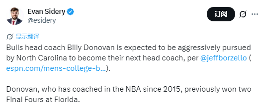 北京时间3月25日,根据ESPN的报道显示,公牛主帅多诺万将成为接受北卡罗来纳大学篮球校队主教练的头号人选。
