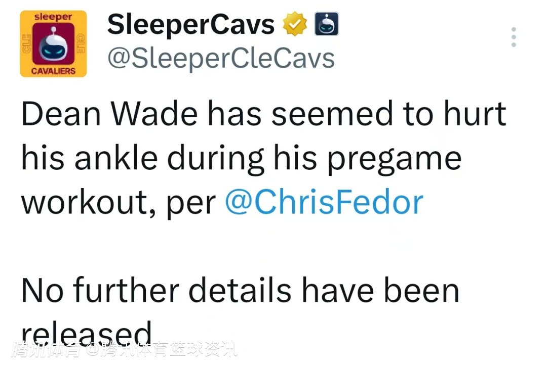 北京时间3月26日,NBA常规赛继续进行,骑士对阵热火。据骑士队记Chris Fedor报道,骑士球员迪恩-韦德在赛前热身时疑似扭伤脚踝。目前暂无更多细节公布。