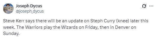 科尔表示:“斯蒂芬-库里(膝盖伤势)的最新情况将在本周晚些时候公布,目前他还没有参加对抗训练。”