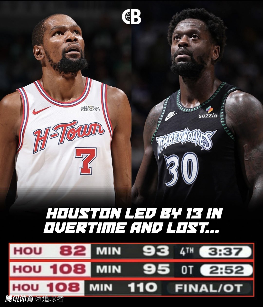 北京时间3月26日,NBA常规赛火箭客场加时惜败森林狼,末节最后时刻,杜兰特惨遭戈贝尔封盖以及传球失误,申京浴血盖帽拖进加时;加时赛火箭13-0梦幻开局,岂料之后,火箭遭遇耻辱3分钟,全队哑火,申京8秒违例,杜兰特低级失误以及绝平罚球打铁,森林狼在华子休战、戈贝尔6犯和里德被驱逐的情况下,打出15-0攻势完成大逆转。