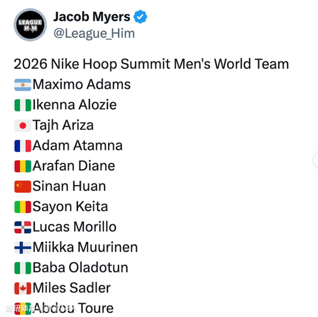 北京时间3月27日,耐克篮球正式公布了2026年耐克篮球峰会国际队阵容。在第27届耐克篮球峰会上,全球顶尖青年篮球人才将与美国本土最强新星正面交锋。赛事将于北京时间4月12日在俄勒冈州波特兰的摩达中心举行。即将加盟普渡大学的中国球员郇斯楠入选国际队。