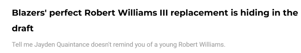 威廉姆斯已经证明,他是本赛季开拓者全队最具价值的球员之一。在其他情况下,球队当然希望长期留下他。谁也说不准,或许双方最终能达成一份双赢的合同。但波特兰今夏必须寻找替代方案,而在乐透末段选中更年轻、更廉价的“威廉姆斯复刻版”昆坦斯,无疑是一个极具吸引力的捡漏选择。不过,如果开拓者执行这样的策略,意味着杨瀚森又将迎来新的队内对手,来竞争下赛季的出场时间。