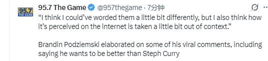 北京时间3月27日,勇士队球员波杰姆斯基接受媒体采访,谈到了此前他说自己会比库里更出色的争议言论。