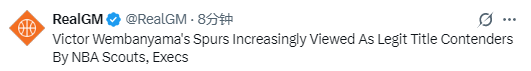 多名高管也认同这一观点。一位近期对阵过马刺的高管评价道:“他们是一支非常出色的球队,执教水平顶尖,阵容构建也十分合理。而且,文班亚马根本防不住。”