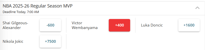 美媒报道称,公牛的罗斯当选MVP时是22岁196天,而文班亚马若获得这项荣誉,将是22岁82天。MVP最新赔率方面,文班亚马达到+400,仅次于亚历山大的-600,排名第二。位居第三和第四的是东契奇(+1600)和约基奇(+7500)。