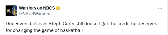 里弗斯表示:“库里是我们这个时代最具颠覆性的球员之一。你现在去看AAU青年联赛,已经没人扣篮了。回想一下,以前看AAU比赛,根本没人跳投,所有人都在扣篮;可如今,大家半场就出手,全都在投三分——这一切都源自一个人,而我们给他的认可还远远不够。”