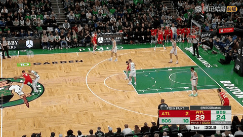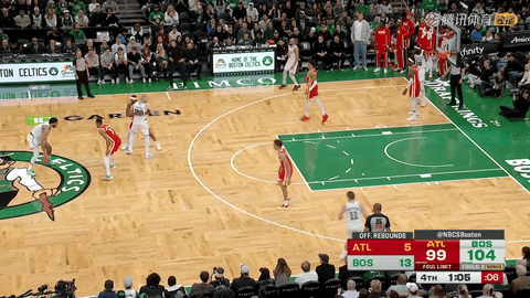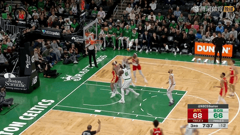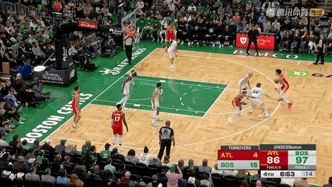 第三节还剩8分30秒时凯尔特人以60-68落后老鹰,他们在接下来约6分钟里打出20-5的攻势,在第三节还剩2分42秒时将比分反超为80-73,并借此牢牢掌控比赛局势。
