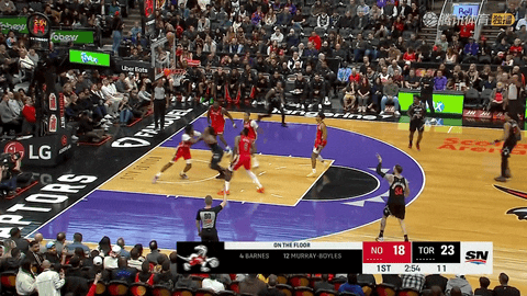 从第二节还剩11分40秒时的27比29落后,到第二节还剩2分14秒时比分变为33比54,猛龙在不到9分半钟里打出25比7的进攻高潮,英格拉姆与巴雷特多次通过罚球和突破取分,珀尔特尔在第二节还剩2分14秒时空切挑篮得手,将领先优势一举拉大到21分。