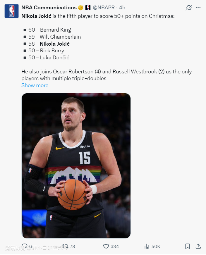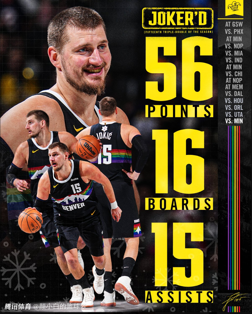 4.约基奇56分+三双刷新个人年终大战历史三双最高分;