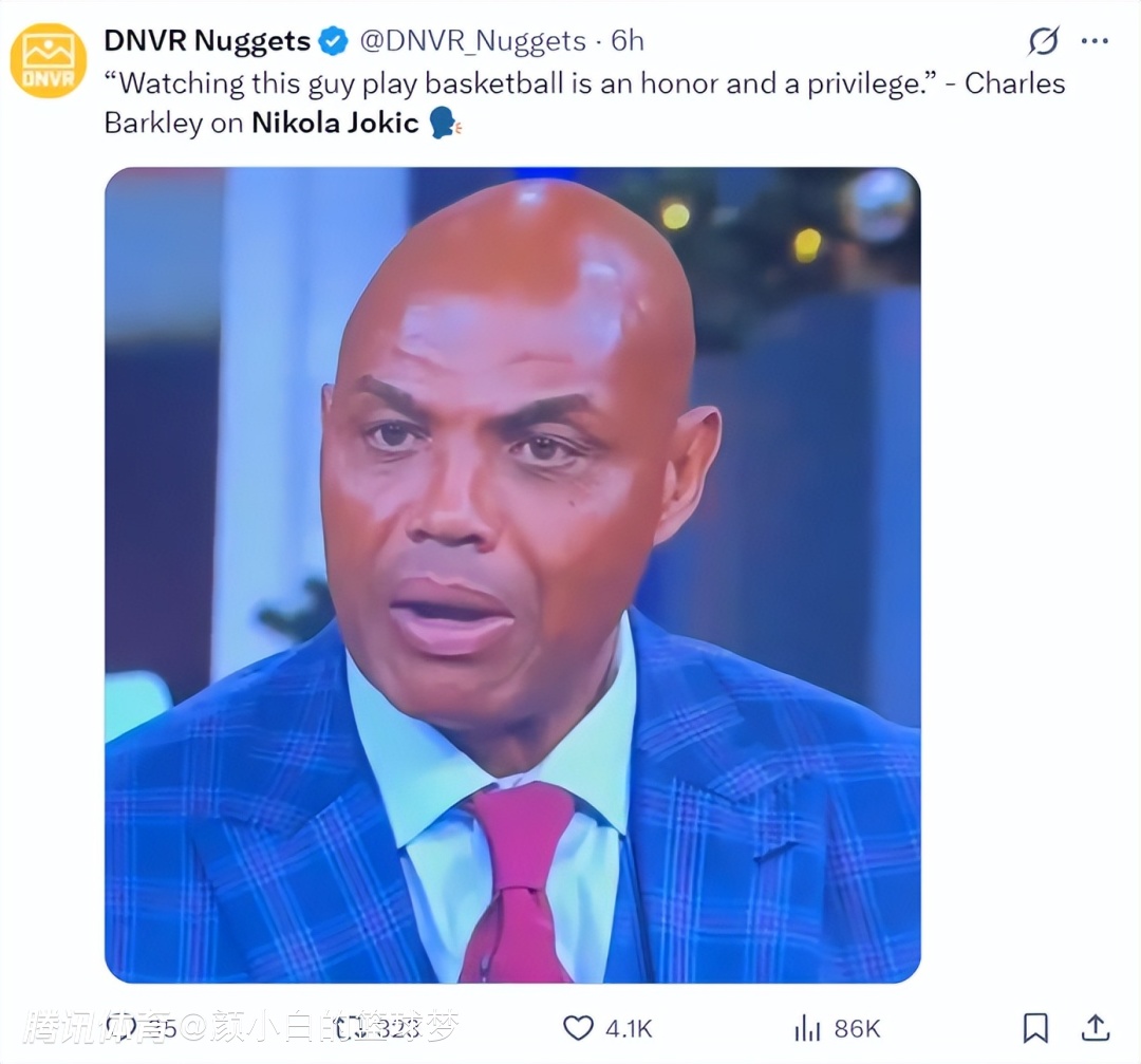 巴克利这样评价约基奇:太疯狂了,能看到约基奇打球真是一种荣幸与特权。