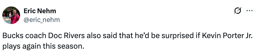 北京时间3月29日,据雄鹿主帅里弗斯透露,小波特预计将缺席本赛季剩余比赛。他在接受采访时表示:“如果小波特本赛季剩余比赛中再度登场,我会感到惊讶。”