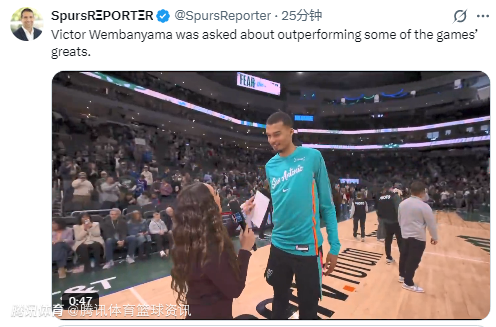 北京时间3月29日,NBA常规赛继续进行,马刺127-95大胜雄鹿。本场比赛中,马刺球星文班亚马,出场30分钟,21投7中,三分3中0,罚球10中9,拿到23分15篮板6助攻2抢断1盖帽。赛后,他接受媒体采访。