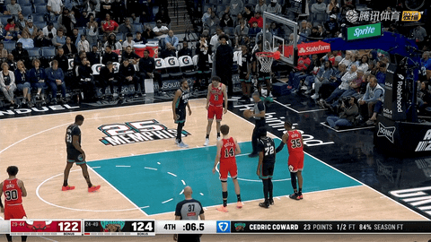 终场哨响,灰熊125:124险胜公牛。