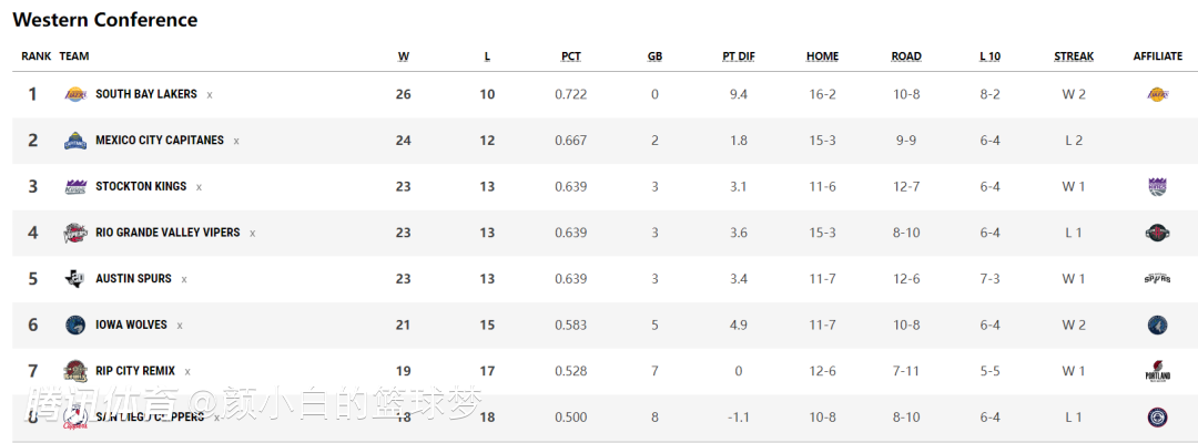这场比赛后南湾湖人战绩26胜10负稳居西部第一,南湾湖人领先西部第二的墨西哥船长队2个胜场,东部第一的奥西奥拉魔法队战绩也是26胜10负,所以湖人与魔法是并列联盟战绩第一的存在。