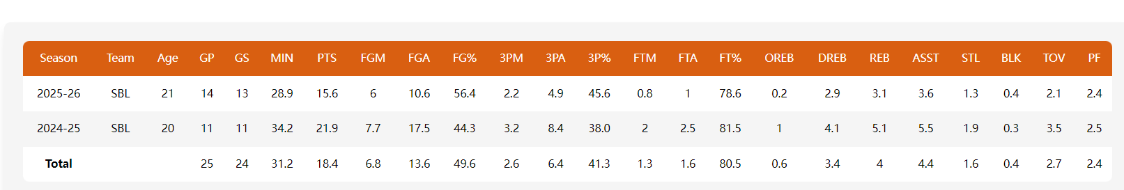 3月29日南湾湖人主场,出战37分钟,12中9,三分8中6,罚球2中1,拿到26分7篮板5助攻1抢断。